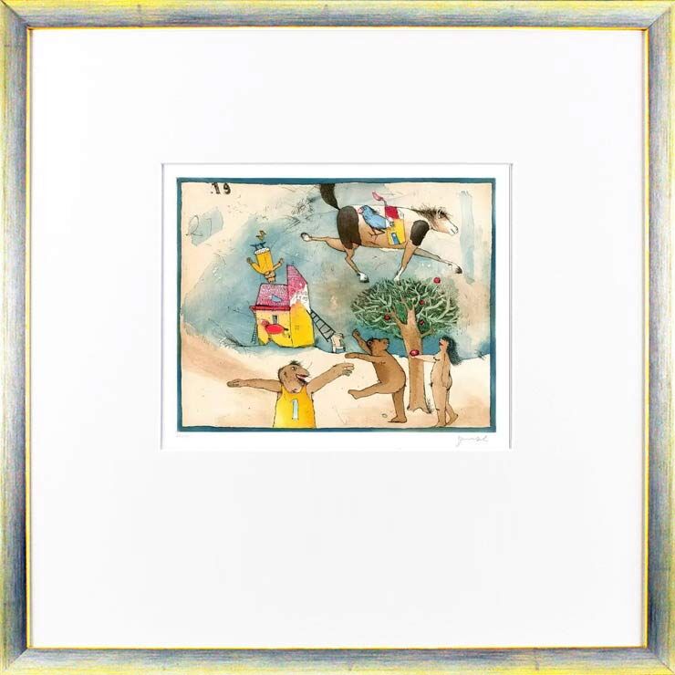 Original Janosch Bilder sind auf dickes Büttenpapier gearbeitet. Die Auflage ist von Janosch handsigniert und weltweit limitiert.