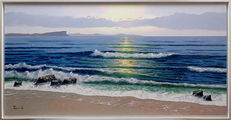 Gegen Ende seines Studiums begann er verstärkt Meeresbilder zu malen, und sogar seine Professoren waren begeistert von den feinen Lichtstimmungen und delikaten Farbnuancen der Wellen, die - wie er sagt - nur durch geduldige Beobachtung erfahren werden können. Dies ist in gewisser Weise eine Selbstdarstellung einer seelischen Landschaft, zupackend, kräftig, aber mit der Zartheit des Starken. Eine Heimkehr, die aus dem Meer, das von der Zerstörung bedroht ist, etwas Lebendiges macht, mit der sich Menschen eine neue Harmonie schenken können.