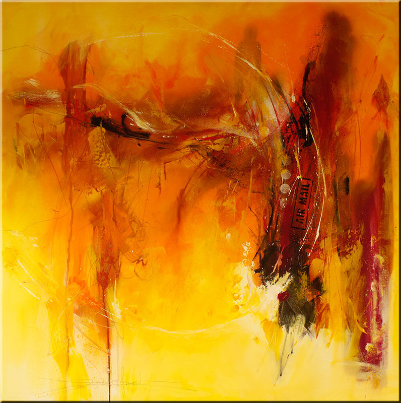 Bestellen Sie dieses einzigartige Gemälde Air Mail mit dem Format von ca. 100x100cm und erfreuen Sie Familie, Freunde, Bekannte oder Geschäftspartner mit einem modernen Kunstwerk. Air Mail wurde als Leinwandbild auf einen hochwertigen Keilrahmen gespannt. Fix und fertig direkt zum Aufhängen.