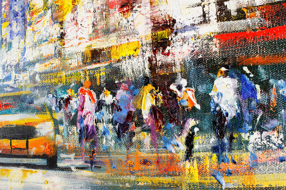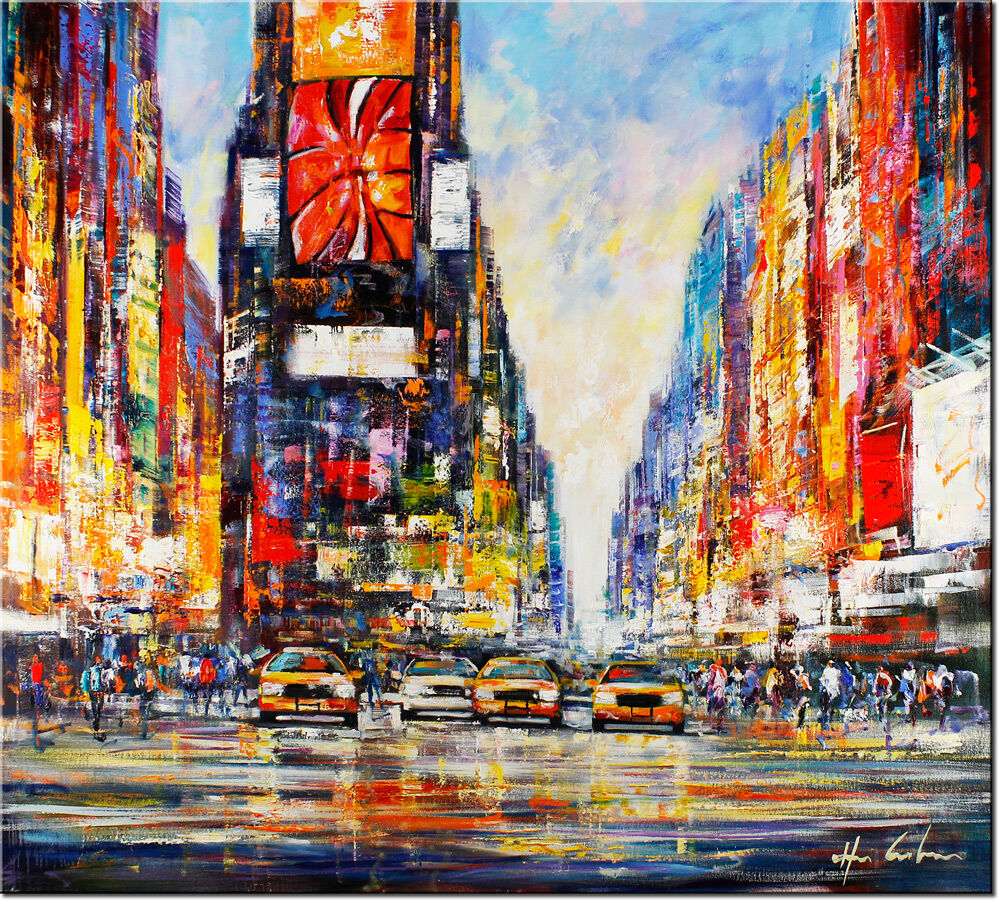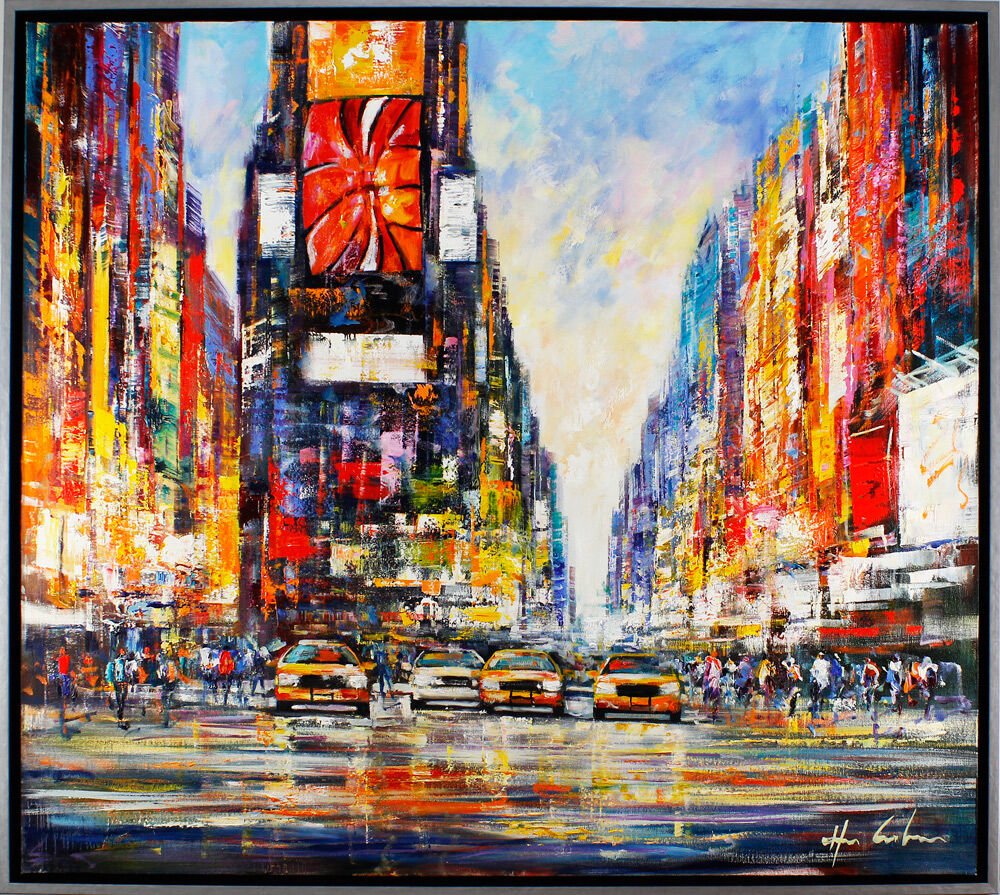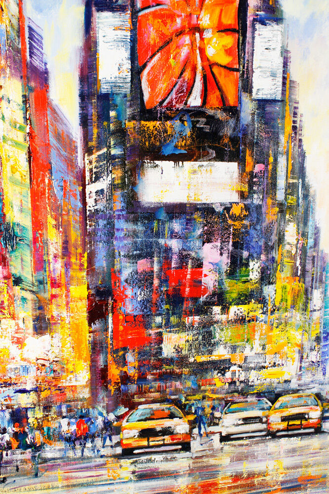 New York - Day at Times Squareist ein original Gemälde auf Leinwand von Christian Henze (geboren 1975 in Caprino / Italien). Der Künstler präsentiert in seinen faszinierenden Bildern von Metropolen wie New York und Paris die Schnelllebigkeit und die Dynamik der Großstadt.