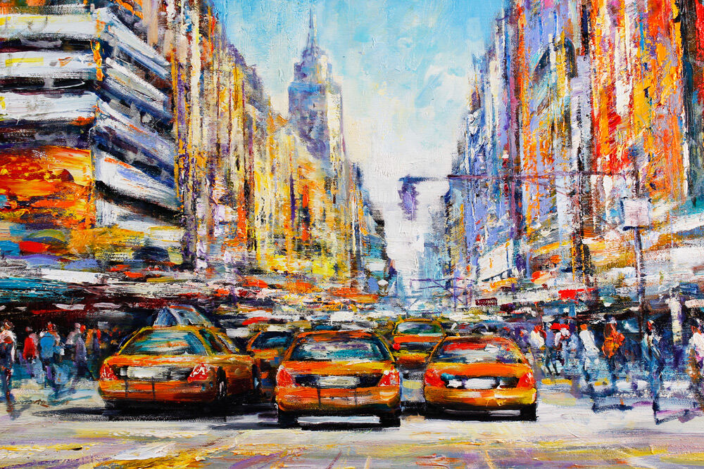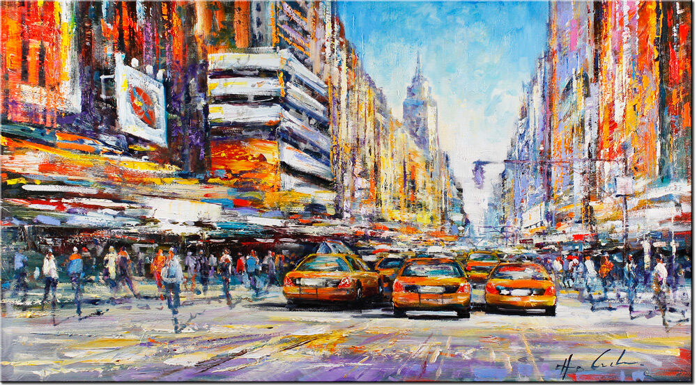 New York Broadway ist ein original Gemälde auf Leinwand von Christian Henze (geboren 1975 in Caprino / Italien). Der Künstler präsentiert in seinen faszinierenden Bildern von Metropolen wie New York und Paris die Schnelllebigkeit und die Dynamik der Großstadt.