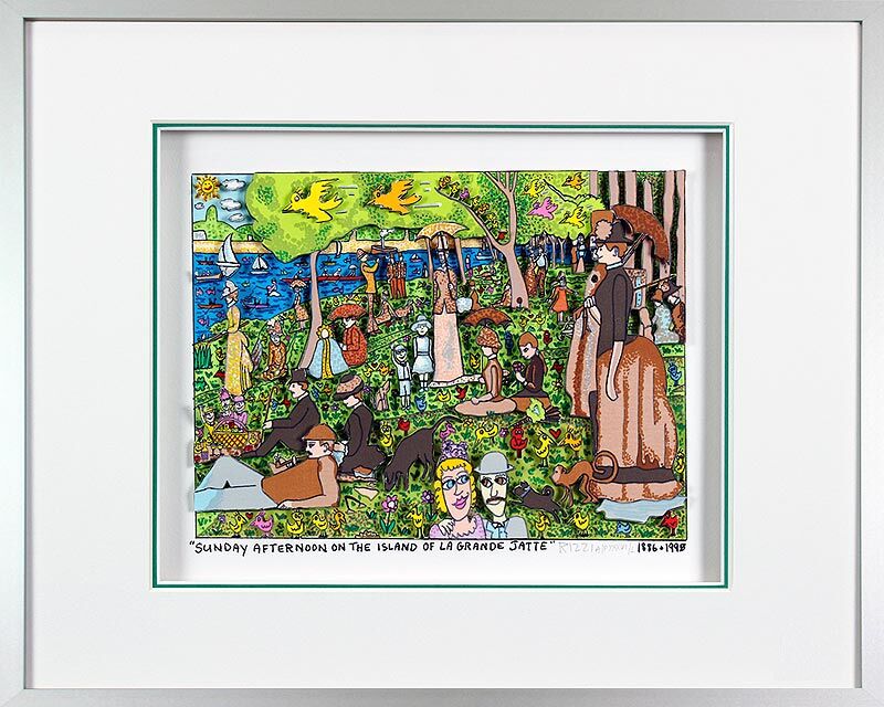 Sie erhalten ein original Exemplar aus der James Rizzi "Künstlerserie" inspiriert durch ebenso bekannte wie auch bedeutsame Klassiker und Persönlichkeiten der Kunstgeschichte. Vorlage war hier Georges Seurat's "Un dimanche après-midi à l'Île de la Grande Jatte" aus dem Jahr 1886. Nutzen Sie diese seltene Gelegenheit um noch ein original handsigniertes James Rizzi 3D Bild zu kaufen. Der Kunstmarkt ist nahezu leer gefegt. Aufgrund der großen Nachfrage gibt es kaum noch handsignierte James Rizzi Bilder.