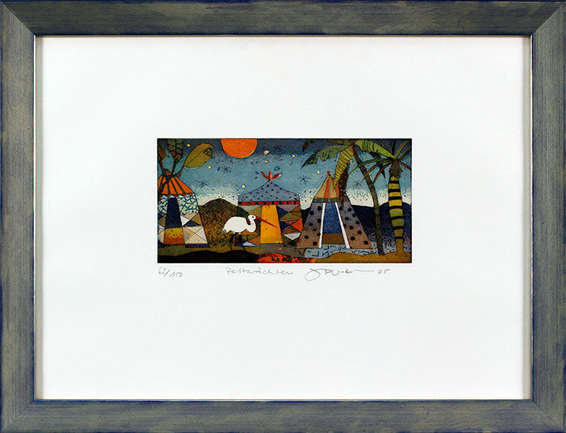 Jutta Votteler - Zeltwächter - Original Farb-Radierung - limitiert und handsigniert - inkl. Bilderrahmen