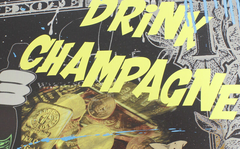 SKYYLOFT "SAVE WATER DRINK CHAMPAGNE BIG DOLLAR" wurde 2023 von Künstlerhand geschaffen und veröffentlicht.
