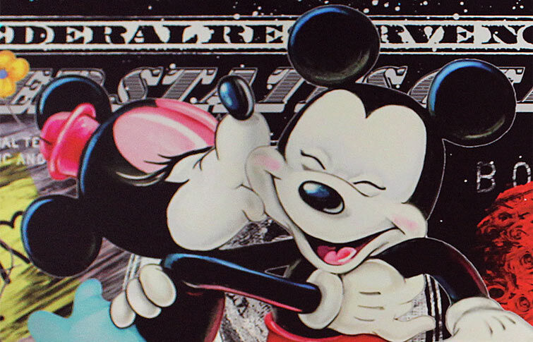 Ein original Skyyloft Dollar-Wandbild als wunderschöne Geschenkidee. Die berühmten Disney-Mäuse Micky und Minnie zeigen uns hier Ihre süße Liebe!