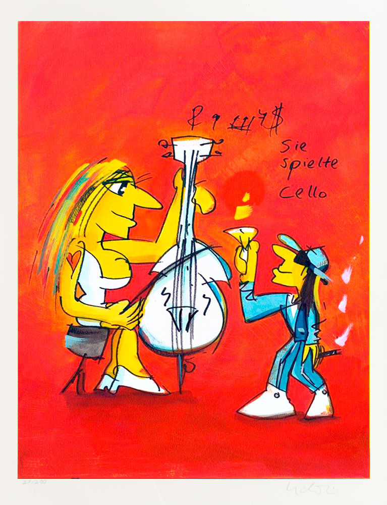 Diese neue Auflage von "SIE SPIELTE CELLO" von 2018 ist vom Künstler handsigniert und auf nur 200 Exemplare weltweit limitiert und einzeln nummeriert. Die gezeigte Nummerierung ist nur ein Beispiel. Sie erhalten ein Exemplar aus der Auflage.