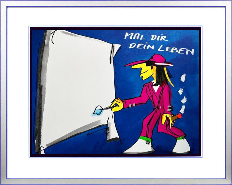 Mit "Mal dir dein Leben - Mach dein Ding" liefert uns Udo Lindenberg nicht nur sein neuestes und in herrlich kräftigem Mitternachtsblau gekleidetes Meisterwek, sondern Sie bekommen bei uns! auch die Möglichkeit, dieses einnehmende Motiv in einer ganz besonders ausergewöhnlichen und somit rar gesähten Variante zu erwerben: "Mal dir dein Leben" mit eigens von Udo persönlich für uns und somit auch für Sie handschriftlich hinzugefügter Wohlfühl-Message.