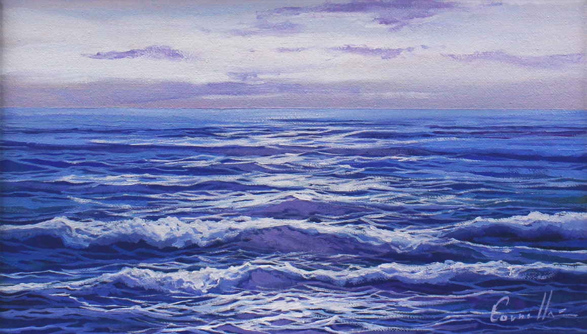 Gegen Ende seines Studiums begann er verstärkt Meeresbilder zu malen, und sogar seine Professoren waren begeistert von den feinen Lichtstimmungen und delikaten Farbnuancen der Wellen, die - wie er sagt - nur durch geduldige Beobachtung erfahren werden können. Dies ist in gewisser Weise eine Selbstdarstellung einer seelischen Landschaft, zupackend, kräftig, aber mit der Zartheit des Starken. Eine Heimkehr, die aus dem Meer, das von der Zerstörung bedroht ist, etwas Lebendiges macht, mit der sich Menschen eine neue Harmonie schenken können.