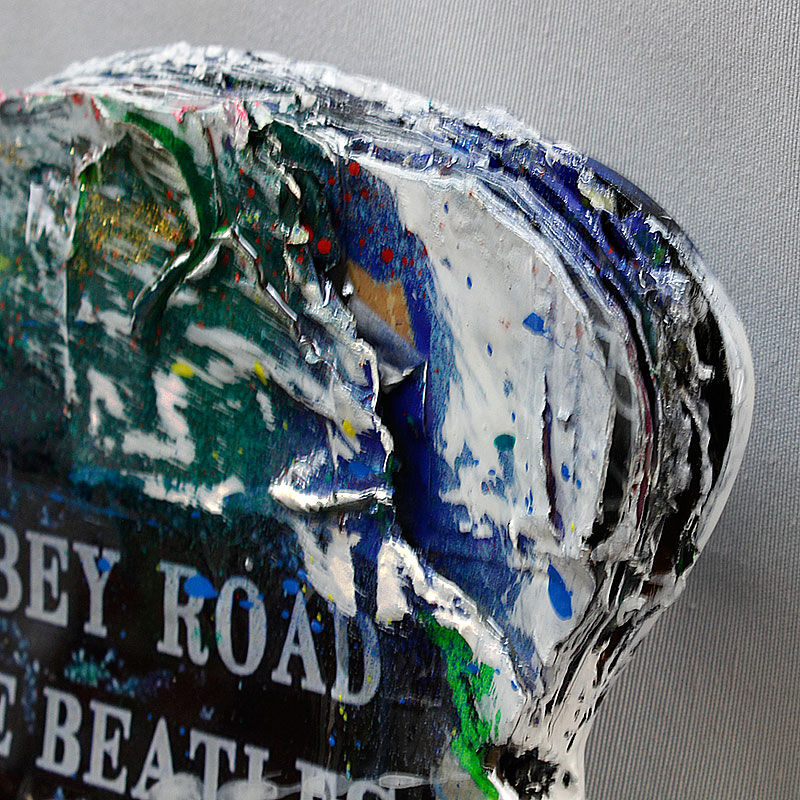 Tanja Kiesewalter hat dieses einzigartige mit Kunstlack überzogene Unikat Werk "HELLO ABBEY ROAD" aufwendig als Collage auf Alu-Dibond gearbeitet. Das Bild hat ein Format von ca. 60x50cm.